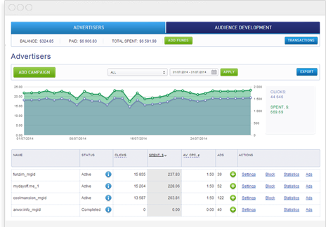 "MGID is my favorite advertising option to date!! Very easy to work with, cheap TARGETED clicks that have led to great conversions numbers! But best of all is they handle EVERYTHING:)"LIFE TIME CUSTOMERS,