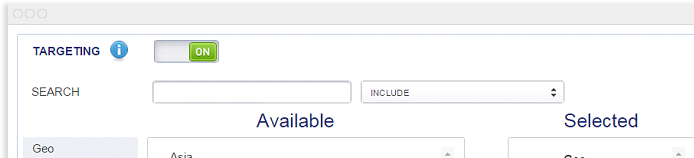 - In-depth targeting features - GEO, OS, browser, time targeting, state/country targeting, and a vast re-targeting arsenal